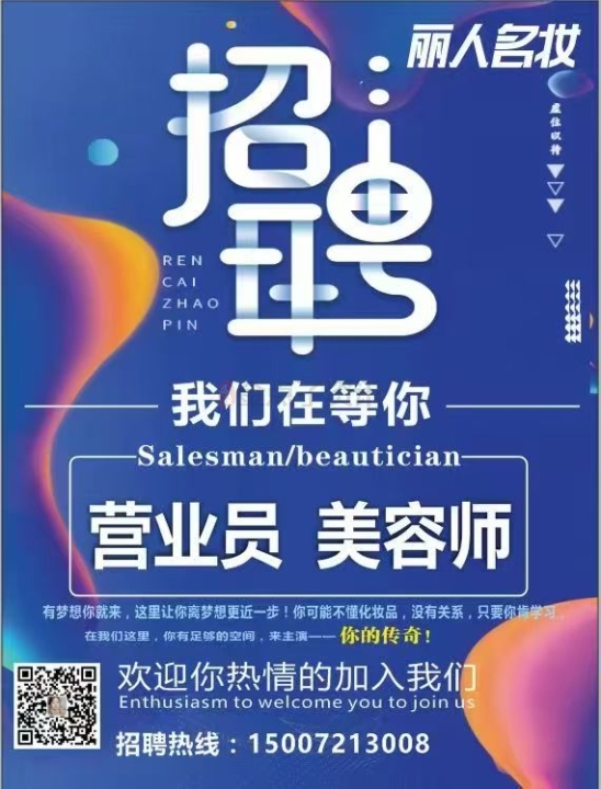 【丽人名妆】招聘导购,美容师3...