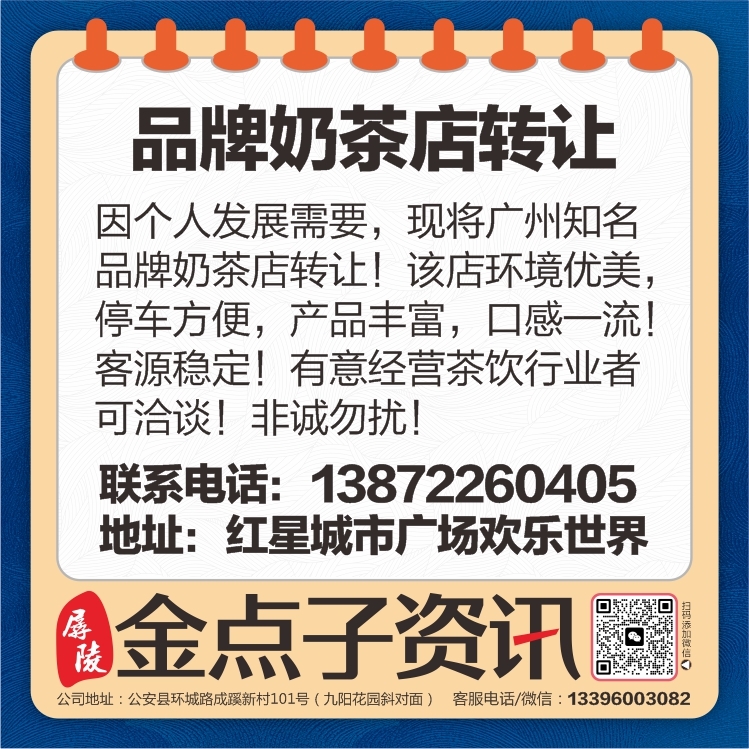 【品牌奶茶店转让】因个人发展需要,现将广州知名品牌奶茶店转让!该店环境...