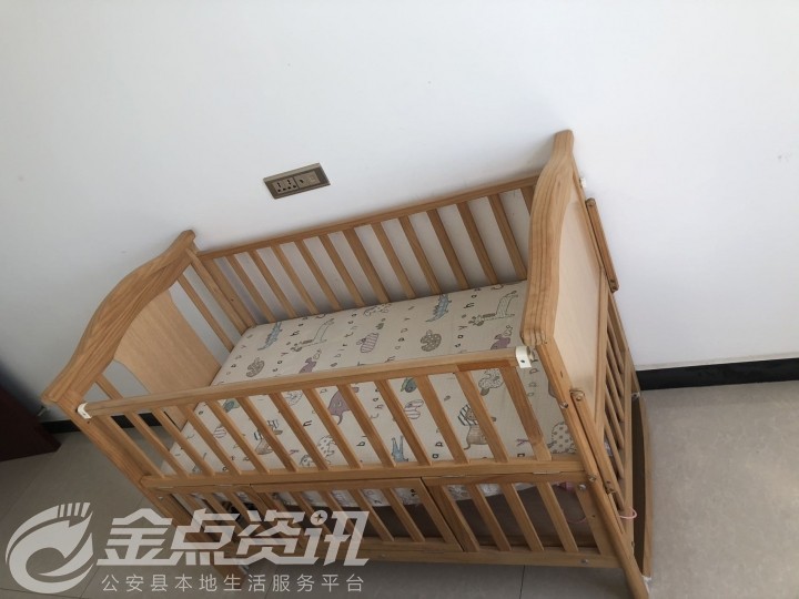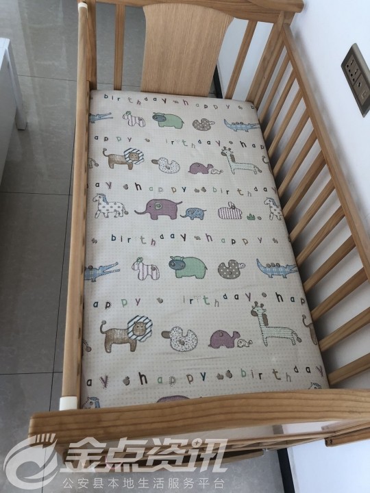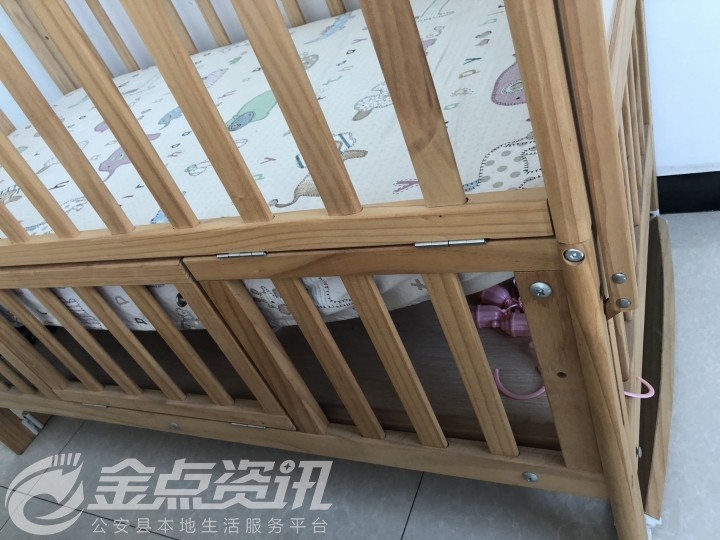 原木婴儿床,带围栏,棕床垫,送整套床围...