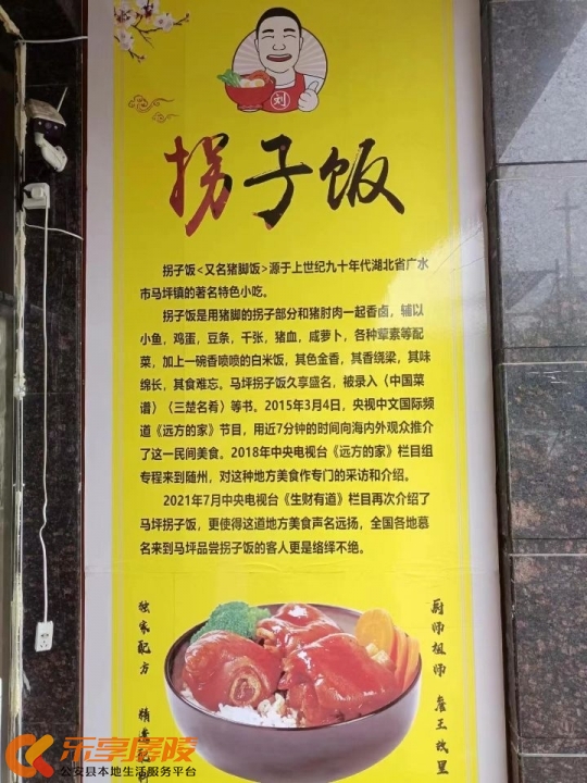 厨祖詹王故里特色小吃“刘一手拐子饭”入住公安了,舌尖上的美味。地址公安县油江路县建设局对面,电话*****7229