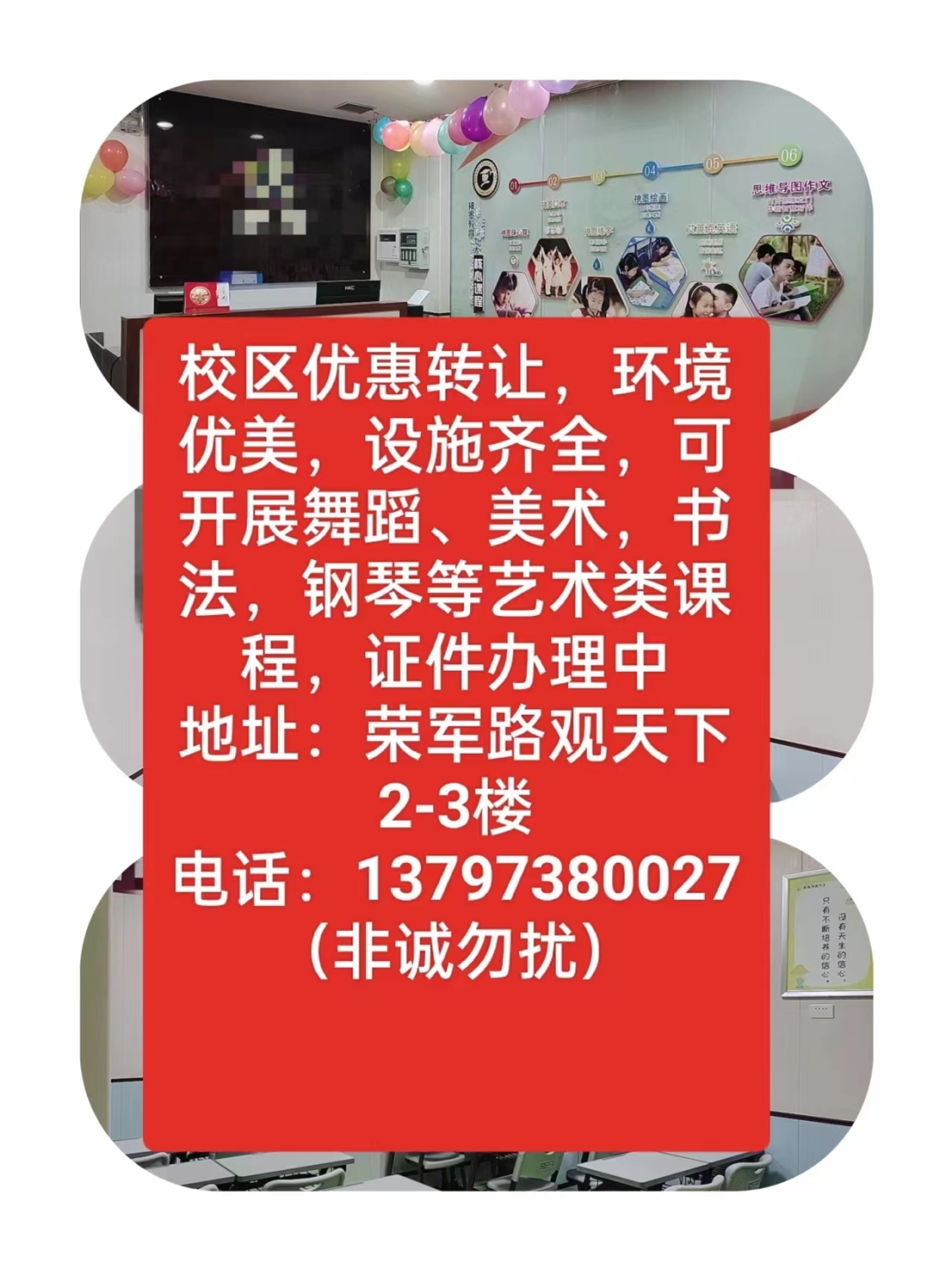 校区优惠转让环境优美,设施齐全,可开展舞蹈、美术,...