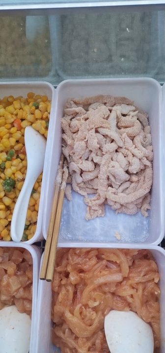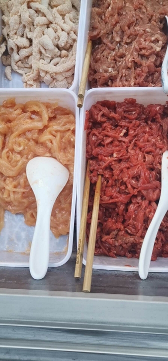 香酥鸡排,黑椒牛排,铁板鱿鱼须,香酥豌豆,区死豌豆(公安本地叫法),炸藕,炸苕,炸藕夹,杂糊椒,总之还是有十几二十个菜
